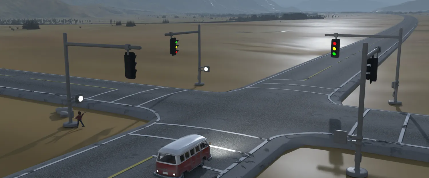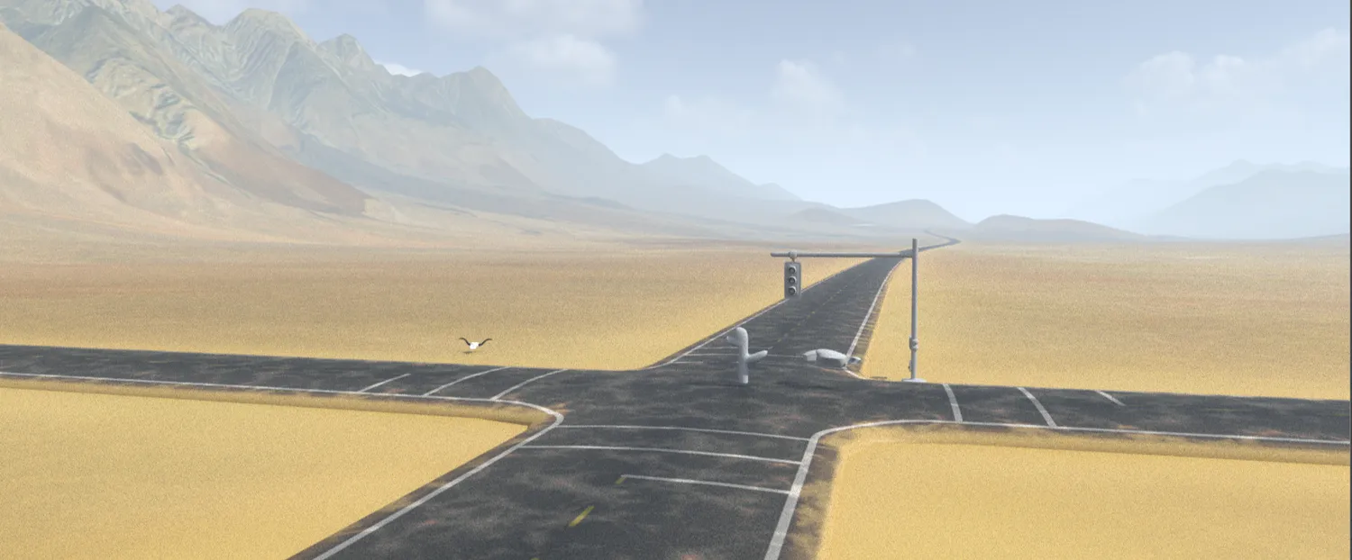 The roads use a custom shading network to create asphalt-like bumps, paint bump maps, racks, mud, and sand overlay. Road textures utilize stacked UV shells as they are extremely long and forever repeating except for the crosswalk section.