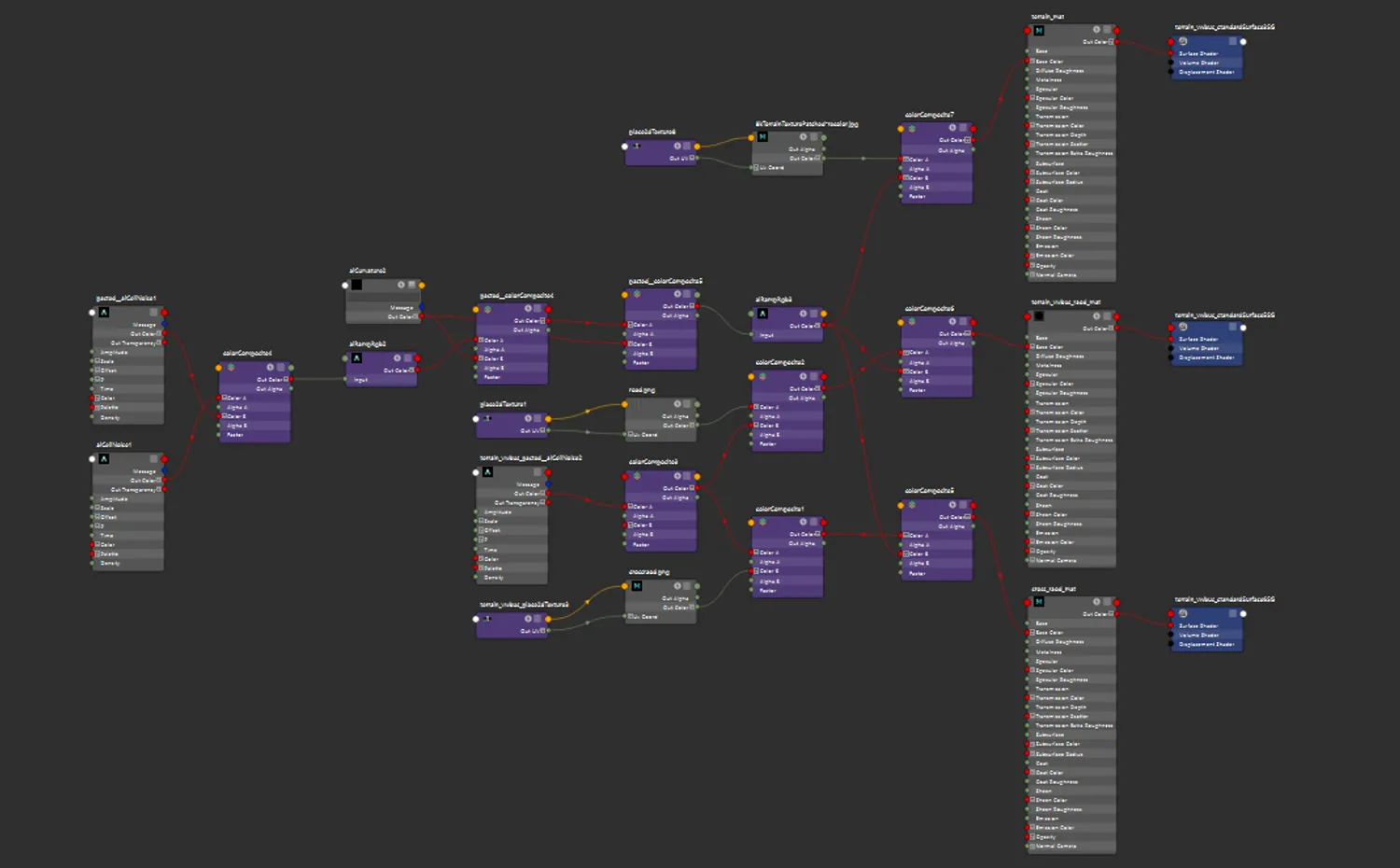 There were several decisions I made considering render times to keep each frame at most less than 90 seconds with an RTX 2070 MaxQ or a GTX 1080TI. I chose the resolution of 1920*800 because this will save more than 25% of the pixels from being rendered. This resolution is also a standard in cinema with an aspect ratio of 2.40:1. The usage of 24fps + motion blur is also to save frames required to be rendered while also giving the animation a film look. Rendered on Arnold’s then “Stable” Arnold GPU, several bugs appeared including the inability to use Optix Denoiser on render sequence images, Arnold curvature node mess-ups, and frequent crashes/lockups. NOICE denoiser also does not have the necessary variance filter support to complete denoising.