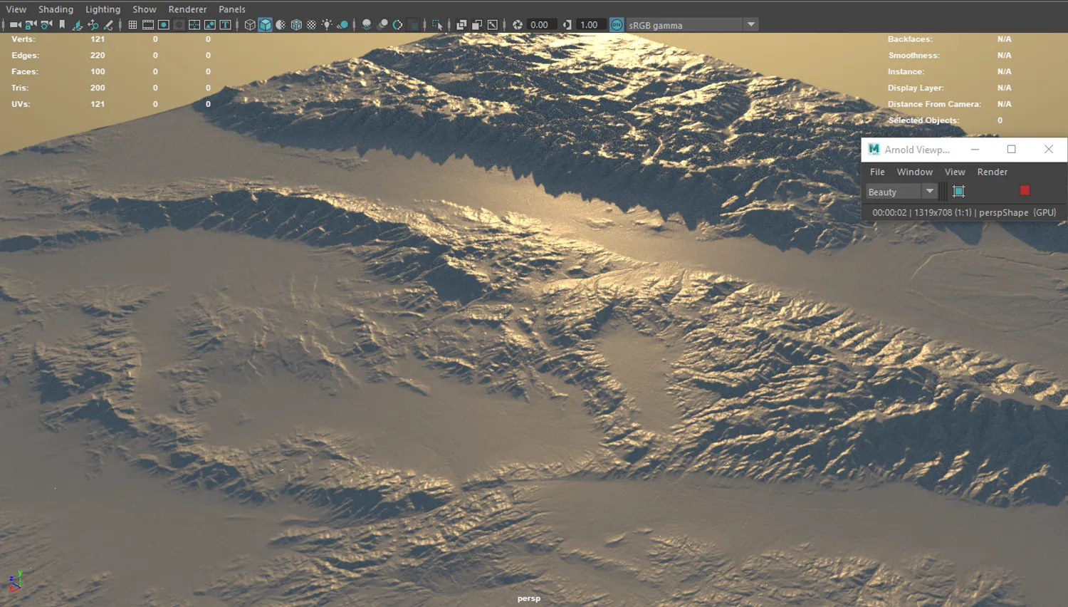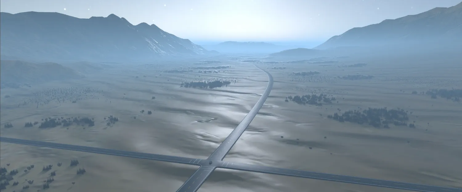 The terrain is created with the help of a NASA EarthData dataset named “ASTER Global Digital Elevation Model V003” of Death Valley California. Stitched together with 9 tiles and used as a displacement map, it will show up as the result below. The terrain is then turned into a mesh for easier asset creation and reference since displacement only shows up upon render. With texture from Maptiler gathered and stitched together more than 500 tiles by a custom script, the terrain can be mapped with real RGB colour with a max resolution of 32k * 32k.