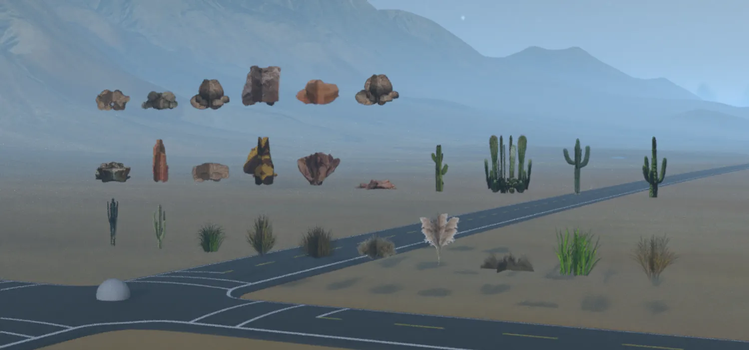 MASH networks are used to plot random clusters of vegetation and rocks to the desert to give depth with tracking shots.